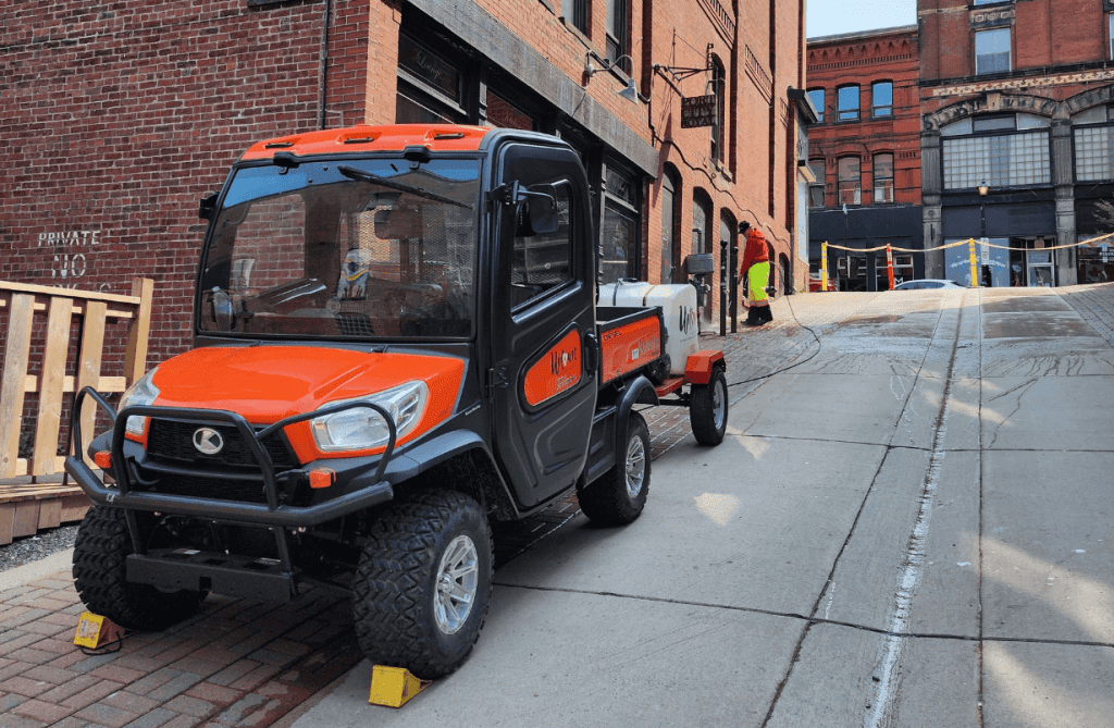 Our Side-by-Side pulls its weight, from towing the power washer to helping remove graffiti and tidy sidewalks. It’s the perfect traffic-friendly way to cover 26 blocks of Uptown pride. Huge thanks to Hall Brothers Enterprises and Kubota Canada for equipping our team to keep Uptown clean, bright, and beautiful!