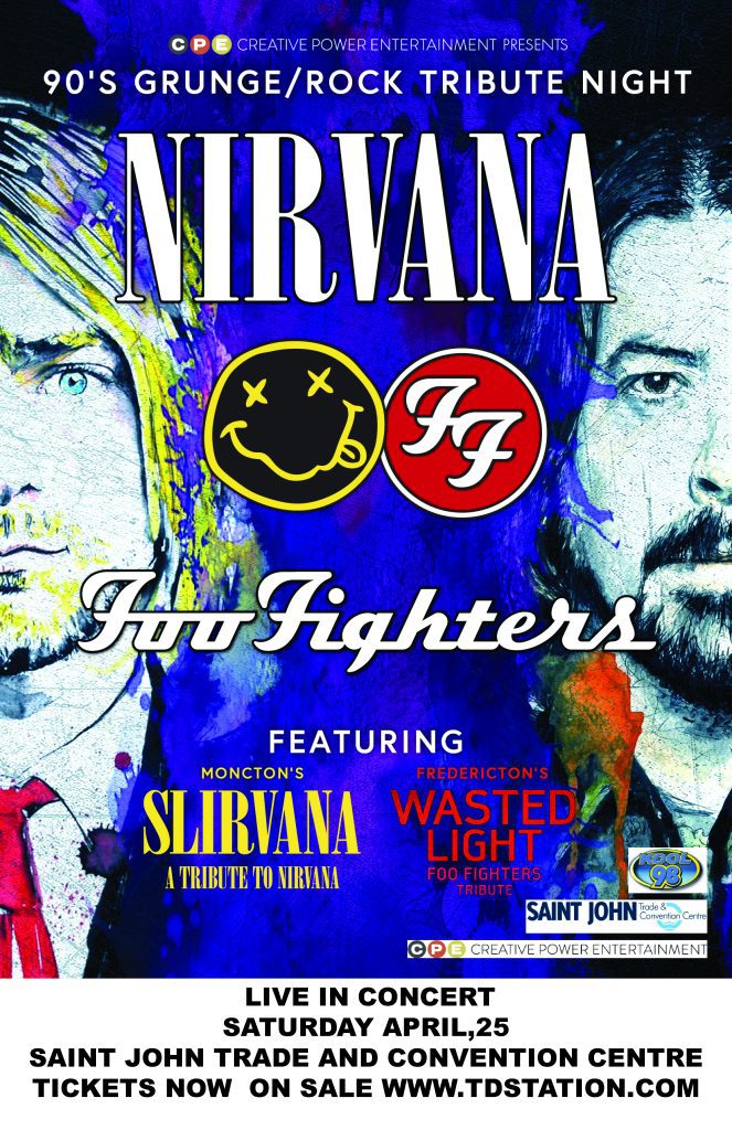 90 Rock Grunge Night Featuring Tribute To Nirvana & The Foo Fighters! Saturday April 25 Saint John Trade & Convention Centre