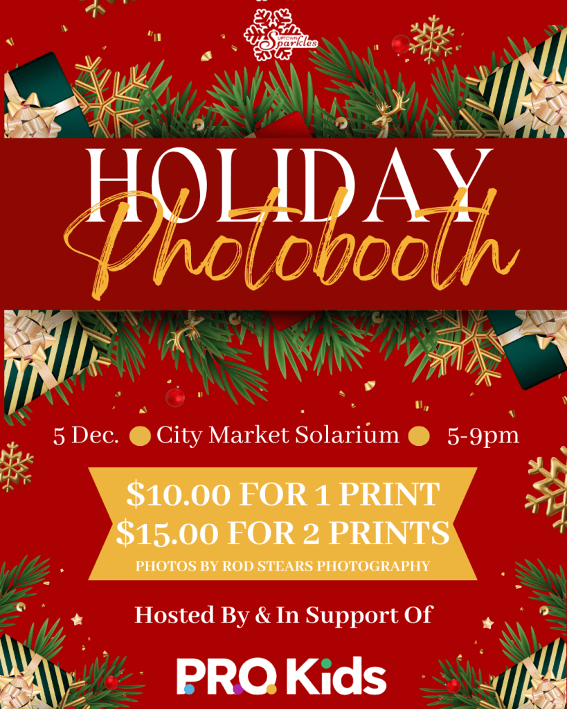 Bring your loved ones and holiday cheer while supporting P.R.O. Kids—helping local children experience the joy of sports, arts, and recreation. Every photo purchased goes directly to supporting our community’s youth, and donations are also welcome on-site.
