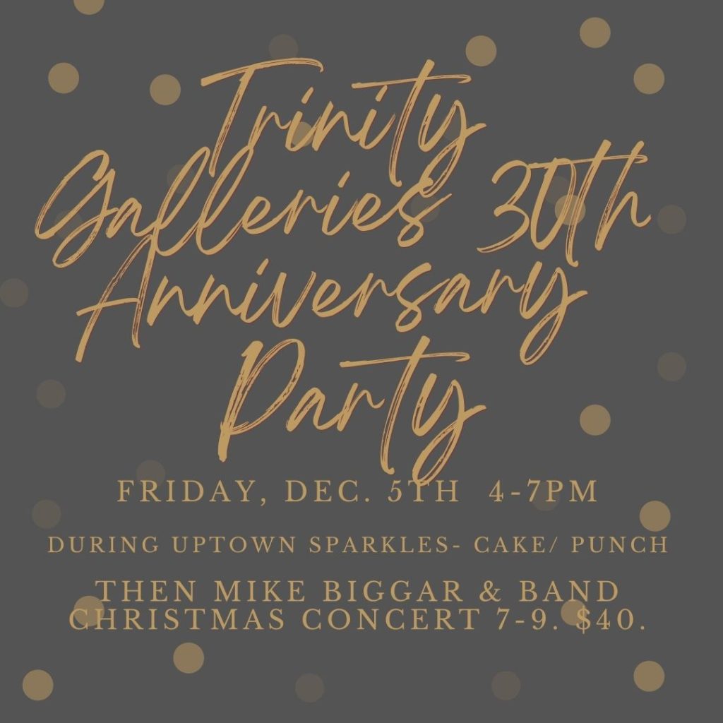 Next week, on the celebration of 30 years in business, during Uptown Sparkles from 4-7, we will have cake, some surprise deals and then the highlight – is the Mike Biggar Christmas Show from 7-9 pm. $40. Reservations recommended.